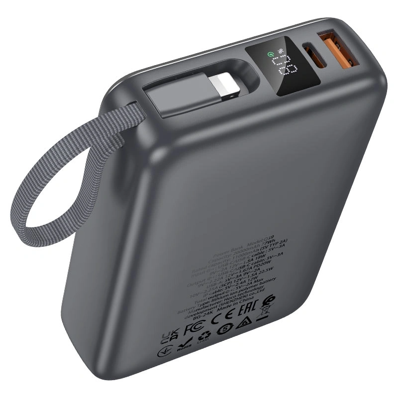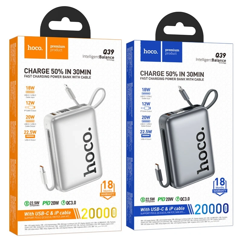 Q39 Eminente, power bank, 20000mAh, Type-C port / built-in cable inputs, Type-C & USB-A ports / built-in Type-C & iP cables outputs, LED digital display, support fast charging protocols